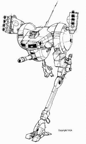 Meanwhile the Locust has long, thin legs and is more than twice as tall. Its weight goes instead into the engine, there is in every case lower armor levels, and it is reasoned that its long legs are necessary to achieve high speeds (such speeds are otherwise 'not possible' with shorter legs). Even so, its overall surface area considering how thin it is, comes out to (short of the turret) roughly the same size, if a little less than the Flea. Long thin limbs are difficult to hit, its arms are almost non-existent, its vertical torso measurement is still smaller than the Flea, and the up-high position is depicted as advantageous in both recon-spotting as well as towering over infantry in such a way that makes climbing it difficult (a problem that often has mechwarriors armed with a knife and small handgun with a watchful eye on their hatches, as well as the true reason for the Adder's Flamer).