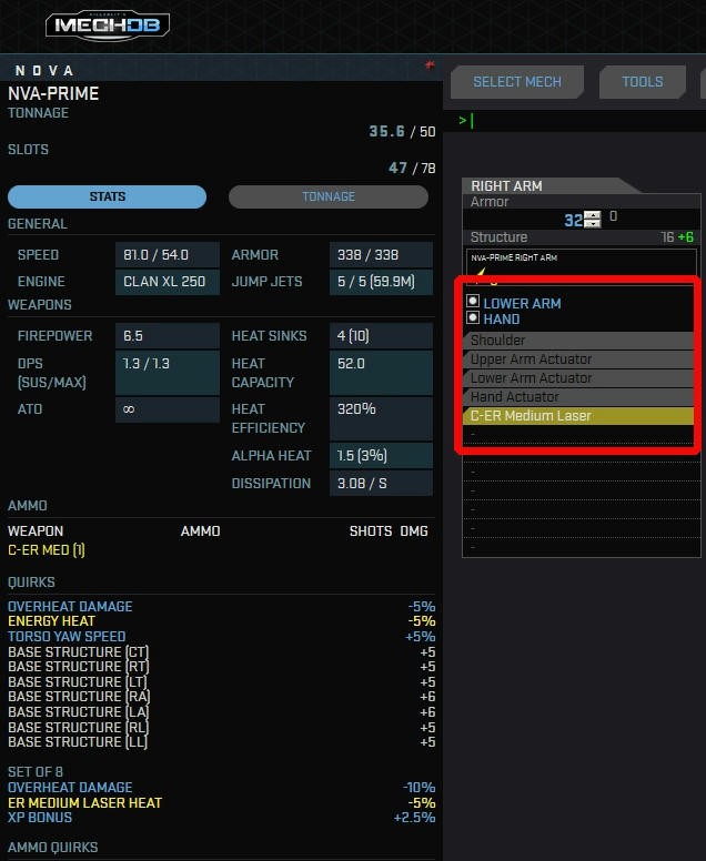 MechDB: I feel this is much stronger in presenting the quirks for various variants.
